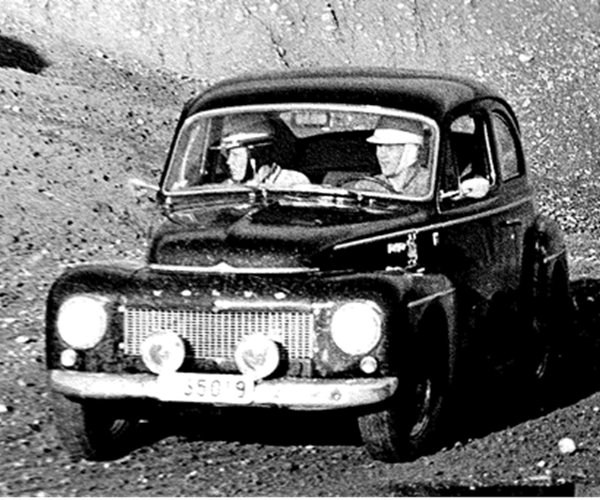 Första bilen var en VW1200 på 30hk. Den kvaddade jag och den här PV544 med B14 på 60? hästar kördes lite klubbtävlingar i grusgropar. Här med Hasse Sjöström.